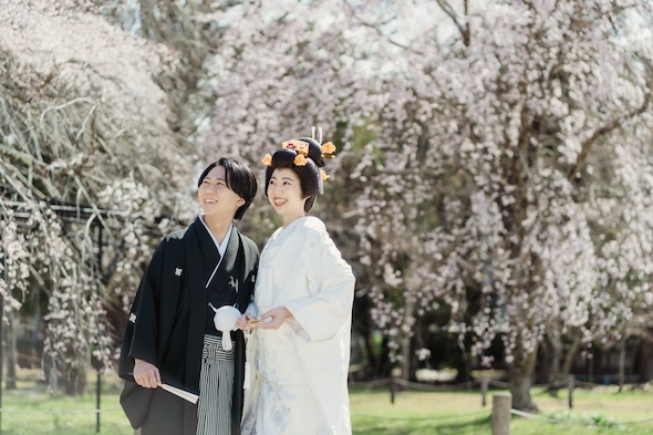春夏秋冬、季節ごとに表情を変える境内の風景とともに、ひと組ひと組が紡いだ世界にひとつだけの物語を。