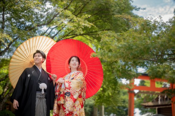 上賀茂神社で結婚式を挙げられたお二人の、式当日の様子をご紹介します。