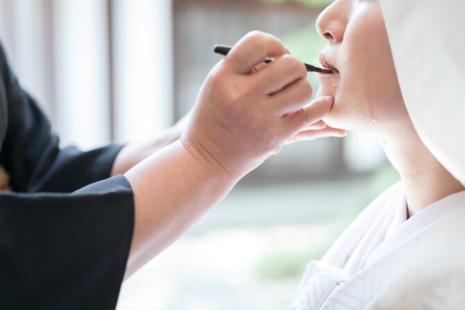 参進前には綿帽子にチェンジされ、お母様からの紅差し。